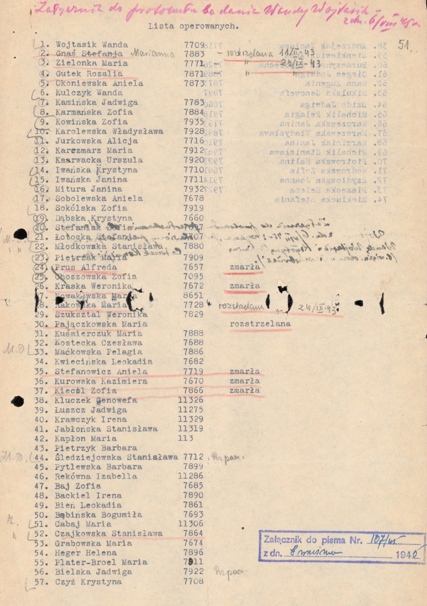 Przed zakończeniem II wojny światowej Wandę przeniesiono z Ravensbrück do podobozu Neustadt-Glewe. W obozie była poddawana eksperymentom pseudomedycznym.