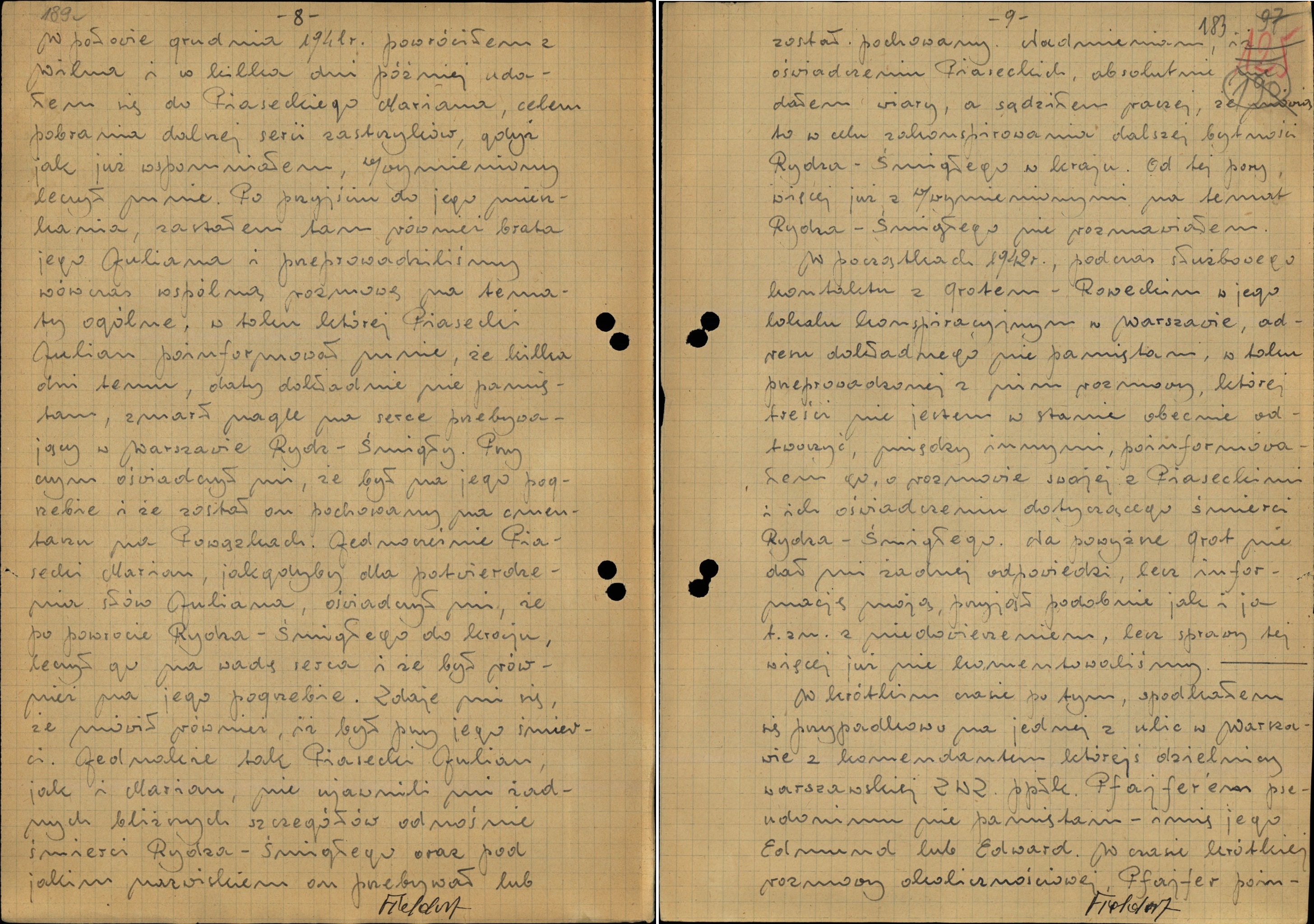Okoliczności pobytu marsz. Śmigłego-Rydza w Polsce czyni jeszcze bardziej zagadkowym powojenne zeznanie gen. Augusta E. Fieldorfa, znajdujące się w aktach śledztwa komunistycznego przeciw generałowi „Nilowi”, obecnie przechowywanych w zasobie Archiwum IPN. Nie dawał on wiary w informację o śmierci Śmigłego-Rydza w grudniu 1941 r., będąc przekonanym, że była rozpowszechniana w celu głębszego zakonspirowania marszałka. Tę jego ówczesną wątpliwość miał podzielać także gen. Stefan Rowecki.