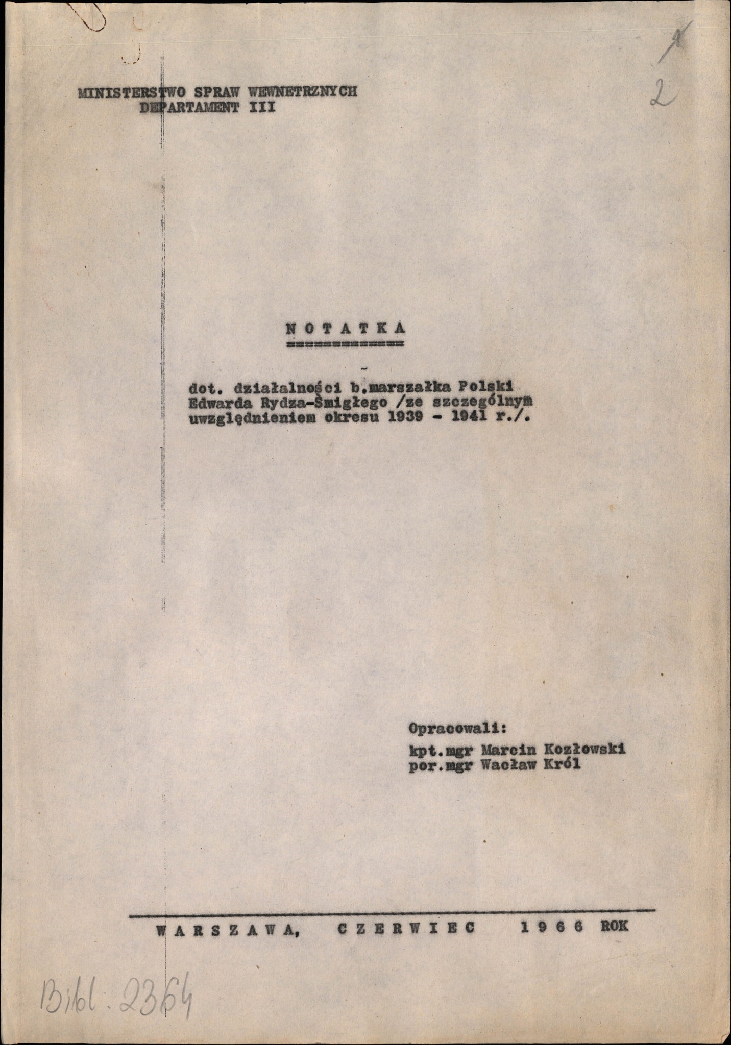 Wspomniane materiały IPN, nieznane Dariuszowi Baliszewskiemu i jego oponentom, pozwalają dostrzec niejasności w najpełniejszej relacji o losach marsz. Śmigłego-Rydza w kraju i zmuszają co najmniej do zadania pytań o okoliczności powrotu do Polski, pobytu w Warszawie oraz śmierci Naczelnego Wodza WP. A że budziło to zainteresowanie i w PRL, niech świadczy to, że w 1966 r. swoiste historyczne śledztwo na ten temat przeprowadziła Służba Bezpieczeństwa. Efektem była obszerna ekspertyza pracowników Biura Historycznego Ministerstwa Spraw Wewnętrznych, Marcina Kozłowskiego i Wacława Króla, opracowana w celu ustalenia przyczyn powrotu do kraju marsz. Edwarda Śmigłego-Rydza, jego zamierzeń politycznych i wojskowych oraz okoliczności śmierci. Także i ona znajduje się obecnie w zasobie Archiwum IPN.