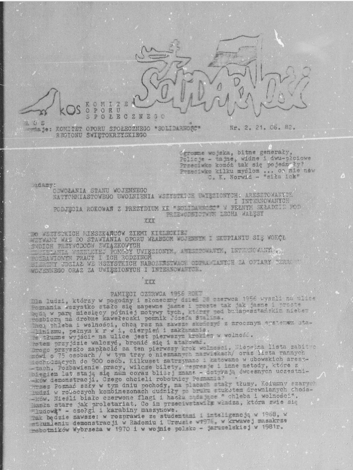Decyzję o wydawaniu własnego pisma podjęła część dawnych działaczy „Solidarności”, która w czerwcu 1982 r. utworzyła grupę Komitetu Oporu Społecznego w Kielcach. Środowisko zaczęło wydawać swoje pismo, znane jako „KOS”. Najczęściej grupa spotykała się w mieszkaniu Marii i Tadeusza Ludwickich w kieleckim Zalesiu. KOS nie był formalną strukturą z jasno wyznaczonym podziałem kompetencji. Niewątpliwie kluczową rolę w przygotowaniu czasopisma pełnili m.in. Tadeusz Ludwicki, Stanisława Gawlik, Zygmunt Pęksyk czy ks. Tadeusz Musiał.