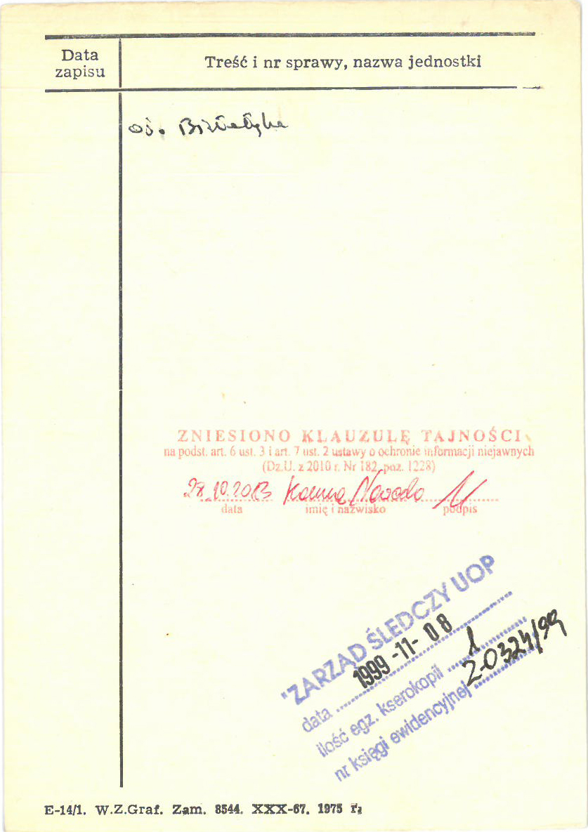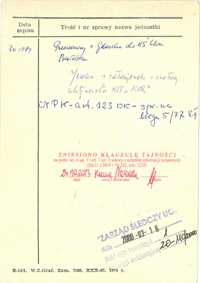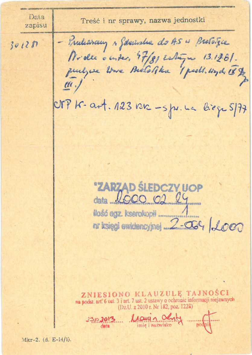 W zasobie Archiwum Pamięci Narodowej znajduje się kartoteka osób internowanych w okresie stanu wojennego, licząca 7 metrów bieżących.