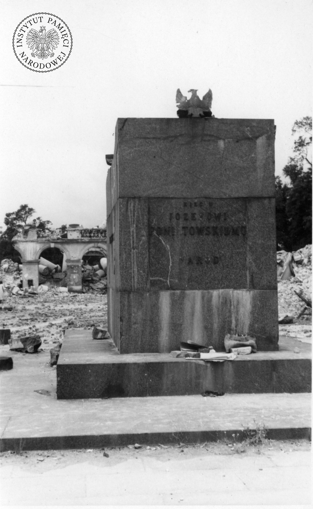 W końcu, 16 grudnia 1944 r., Niemcy wysadzili monument w powietrze – podczas operacji planowego palenia i burzenia Warszawy, grabieży i dewastowania pozostałych w niej jeszcze dóbr kultury. Taki sam los spotkał w tym samym miesiącu pałac Brühla i Pałac Saski w jego sąsiedztwie (w sierpniu 2021 r. Sejm RP przyjął ustawę dotyczącą ich odbudowy).Po II wojnie światowej Królestwo Danii podarowało Warszawie kopię rzeźby księcia Józefa Poniatowskiego, wykonaną z brązu przez Paula Lauritza Rasmussena. Podstawą dzieła był jej oryginalny gipsowy model, zachowany w Muzeum Thorvaldsena w Kopenhadze. W 1952 r. pomnik odsłonięto w Łazienkach Królewskich, przed Starą Oranżerią.