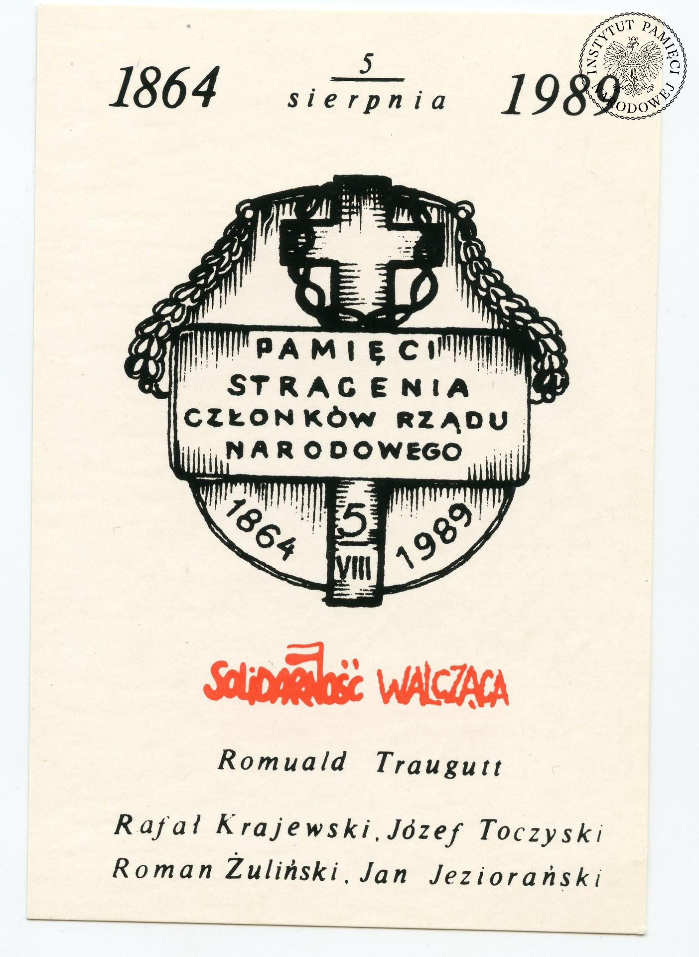 U schyłku PRL do dziedzictwa zrywu z 1863 r. odwoływały się środowiska opozycji demokratycznej, niezależnie od dzielących je istotnych różnic ideowych. Szczególnie często podziemne drukarnie przypominały pieczęć Rządu Narodowego, której tarcza herbowa przypominała o jedności dawnej Rzeczypospolitej – Korony, Litwy i Rusi. W poprzednich dekadach ten – kluczowy dla niezakłamanej historii Powstania Styczniowego – symbol był wspominany wyłącznie na emigracji, szczególnie w środowisku paryskiej „Kultury”, stanowiąc jeden z fundamentów wykuwanej tam idei porozumienia Polski i nacji znajdujących się w sowieckim więzieniu narodów.
