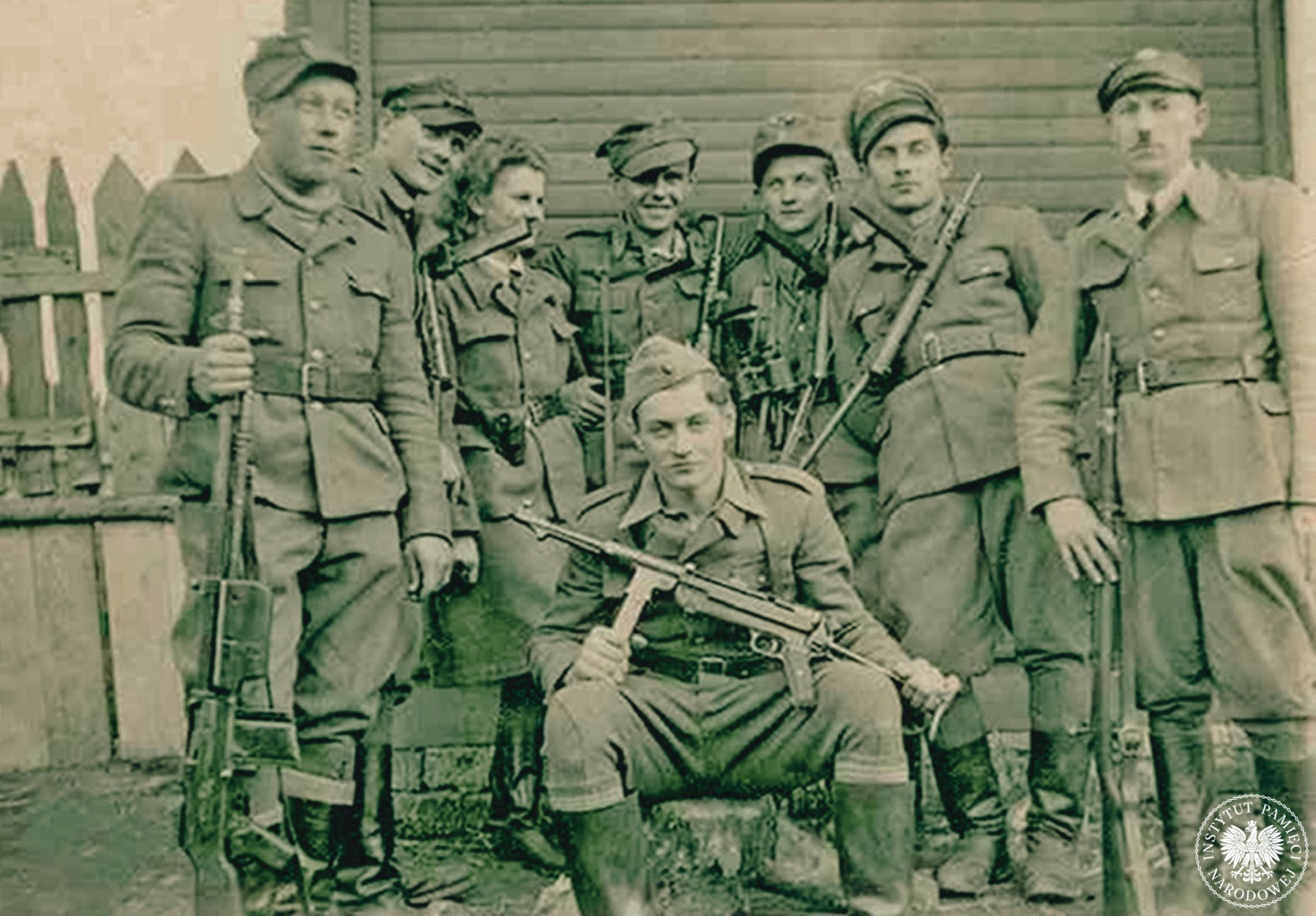Oddział Zdzisława Brońskiego „Uskoka”, wiosna 1946 r. Siedzą w pierwszym rzędzie od lewej: Fran. Kasperek „Hardy”, Zdzis. Broński „Uskok”, Aleksand. Radko „Paw”, Wal. Waśkowicz „Strzała”, przed nimi N.N. „Przybysz”, w drugim rzędzie od lewej: Stan. Ciołek „Lew”, Stan. Libera „Burza”, Stan. Staropiętka „Stańczyk”, Józef Jóźwiak „Osa”. Stoają od lewej: Czes.Sajko „Sowa”, Fran. Oberc „Orzełek”, Mieczys.Zwoliński „Jeleń”, N.N. „Toporek”, Paweł Orzechowski „Wilk”, Zyg. Libera „Babinicz” (fot. AIPN)