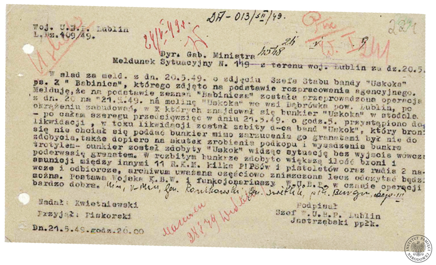 Pertraktacje z „Uskokiem” trwały długo. W raporcie dowódcy 3. Brygady KBW czytamy: