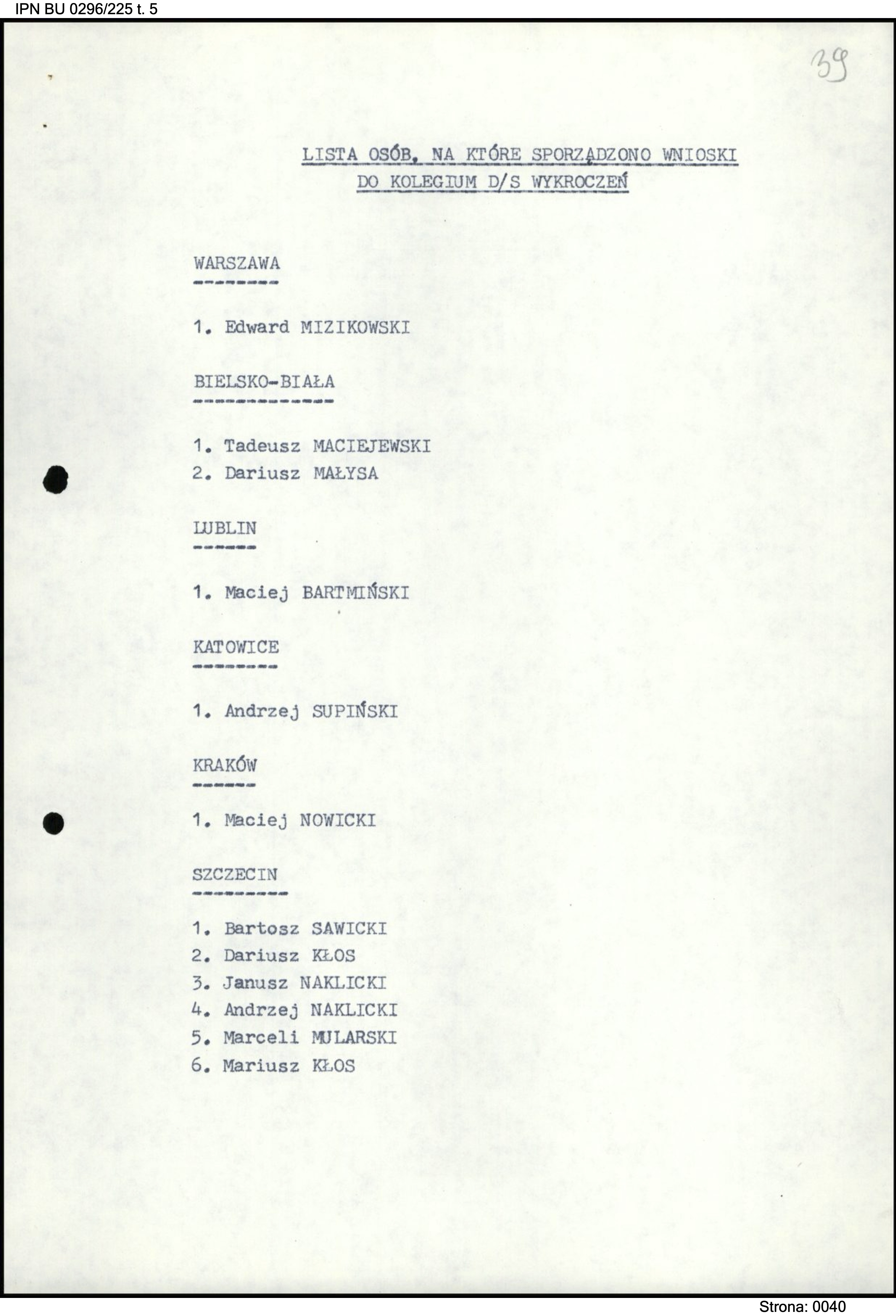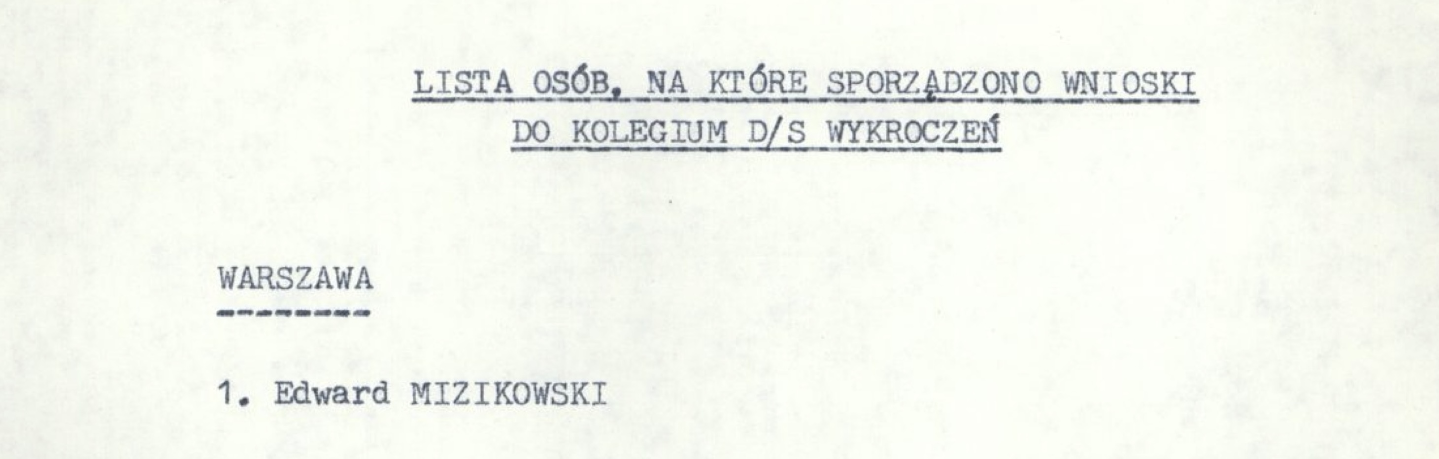 Powyżej przykład wyroku kolegium ds. wykroczeń, typowy dla drugiej połowy lat siedemdziesiątych. Sprawa dotyczyła dwóch działaczy warszawskiej opozycji związanych z Komitetem Obrony Robotników: Zbigniewa Romaszewskiego i Henryka Wujca.