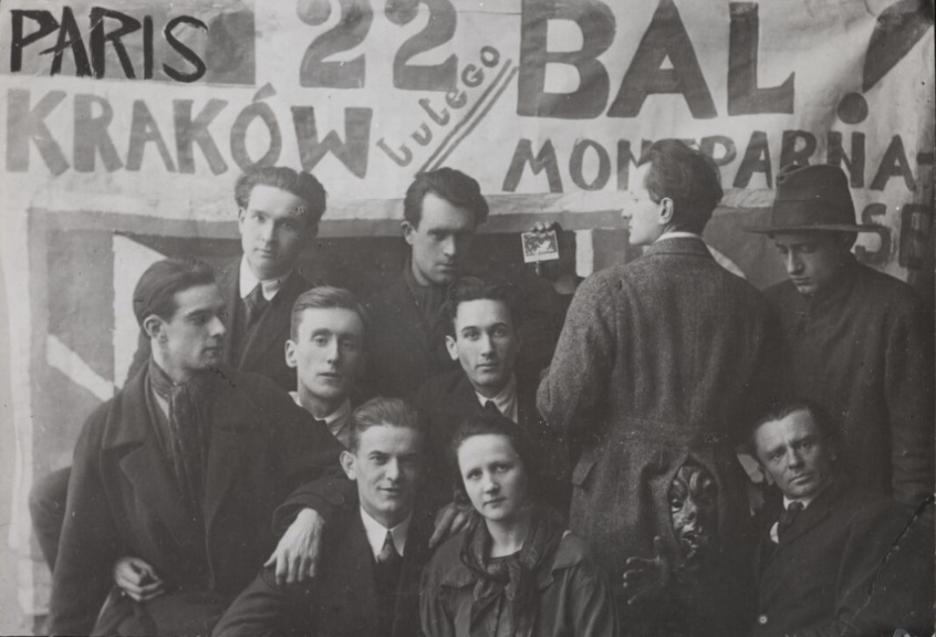 Kapiści przed wyjazdem do Paryża. Stoją z tyłu od lewej: Józef Jarema, Seweryn Boraczok, Tadeusz P. Potworowski (tyłem), Jacek Puget. Siedzą w środku od lewej: Zygmunt Waliszewski, Józef Czapski, Artur Nacht-Samborski. Siedzą w dolnym rzędzie od lewej: Jan Cybis, Hanka Cybisowa, Tytus Czyżewski, Kraków, 1924 r. (fot. ze zbiorów Biblioteki Narodowej)