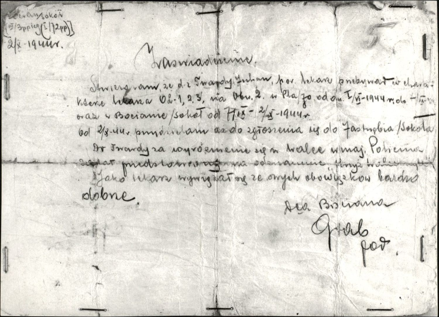 Zaopatrzony w dokumenty legalizujące jego pobyt w Generalnym Gubernatorstwie, już w lutym 1940 r. powrócił do wykonywania zawodu lekarza. Po latach wspominał: