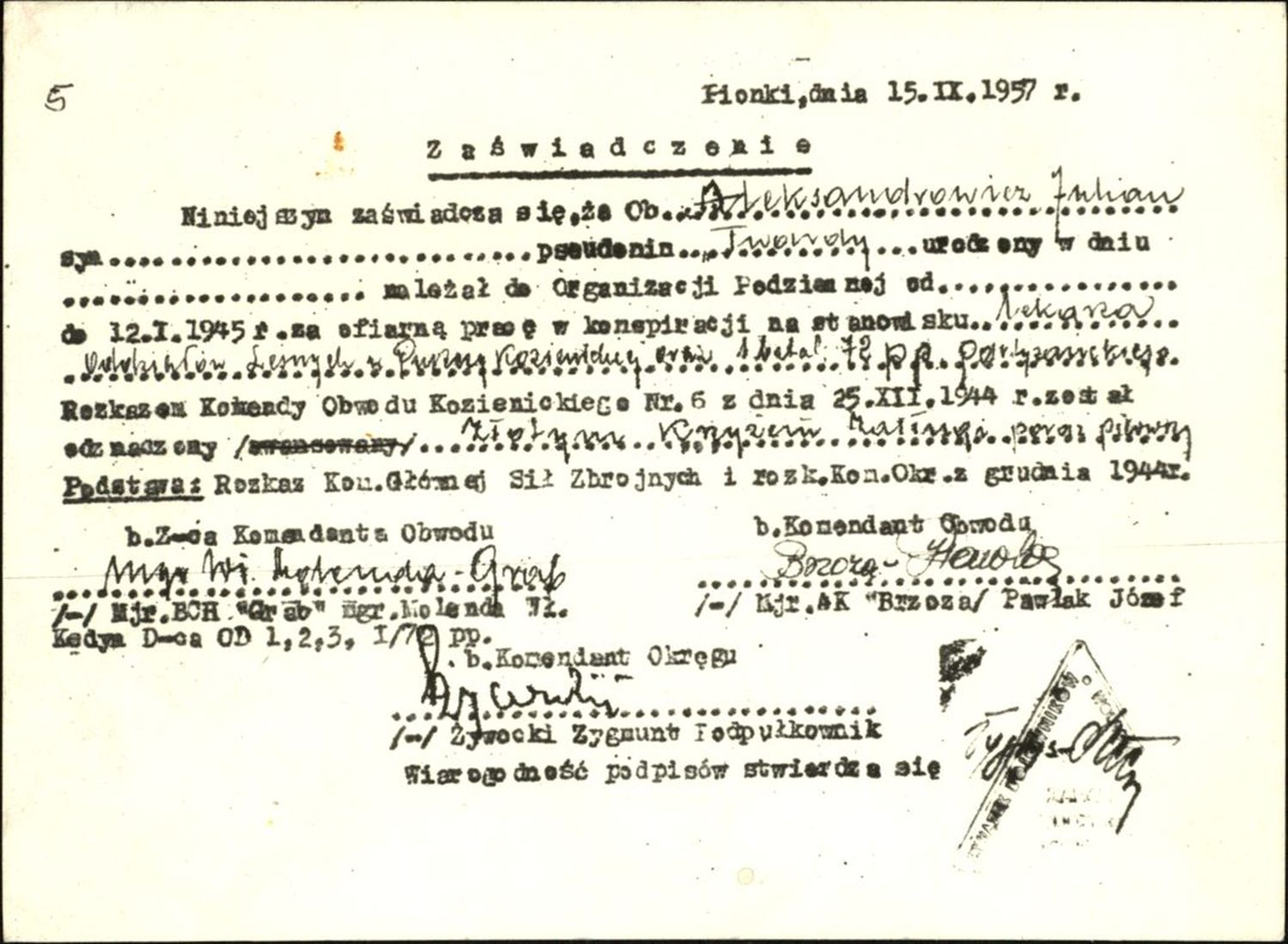 Na zachowanie w zasobie Instytutu Pamięci Narodowej kolekcji dokumentów związanych z losami jednego z najwybitniejszych polskich hematologów zgodę wyraziła prof. Beata Szymańska-Aleksandrowicz, synowa zmarłego w 1988 r. prof. Juliana Aleksandrowicza. Dokumenty te są również niezwykle ważne dla realizacji programu dokumentacyjnego „Straty osobowe i ofiary represji pod okupacją niemiecką w latach 1939-1945” – straty.pl.