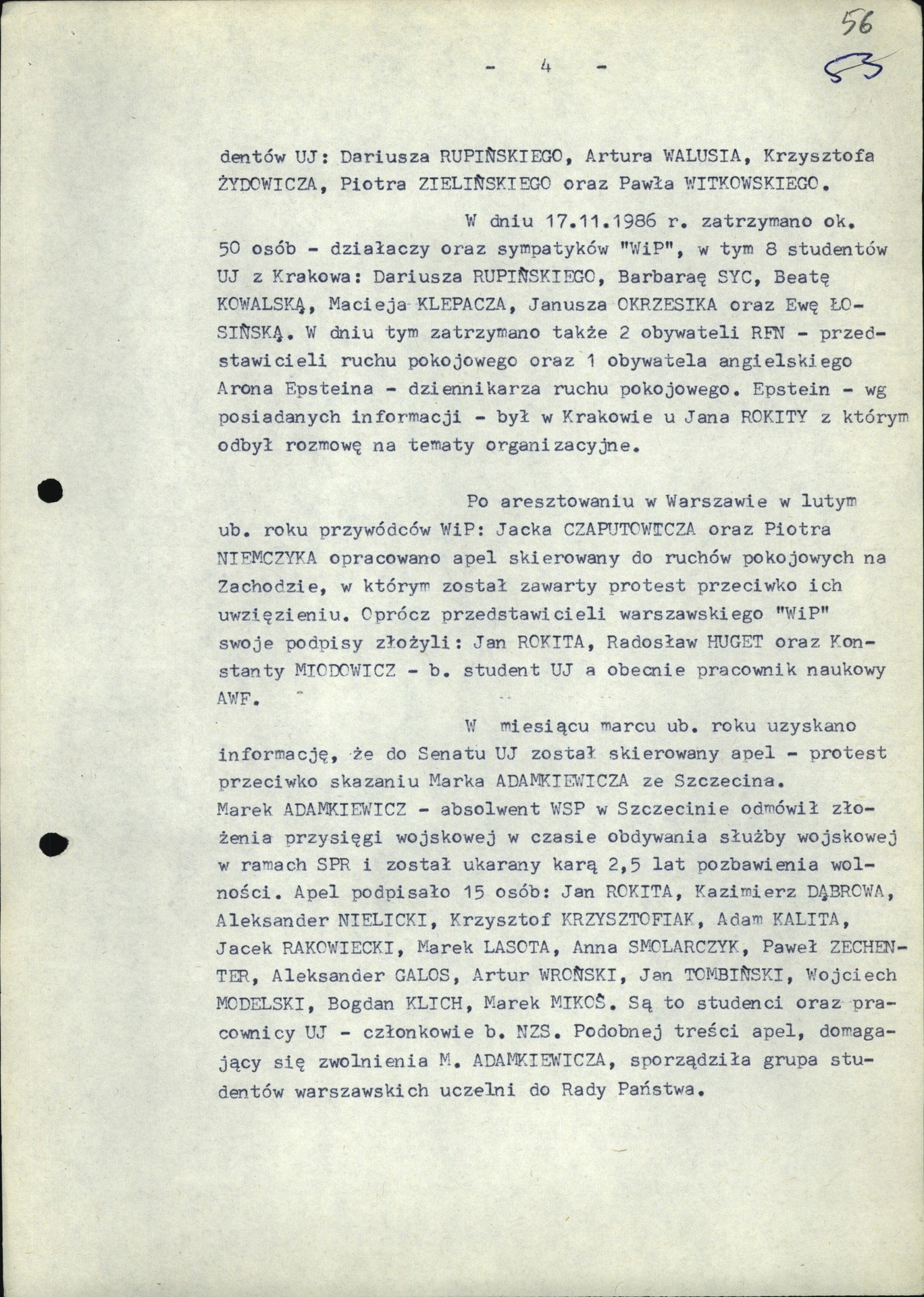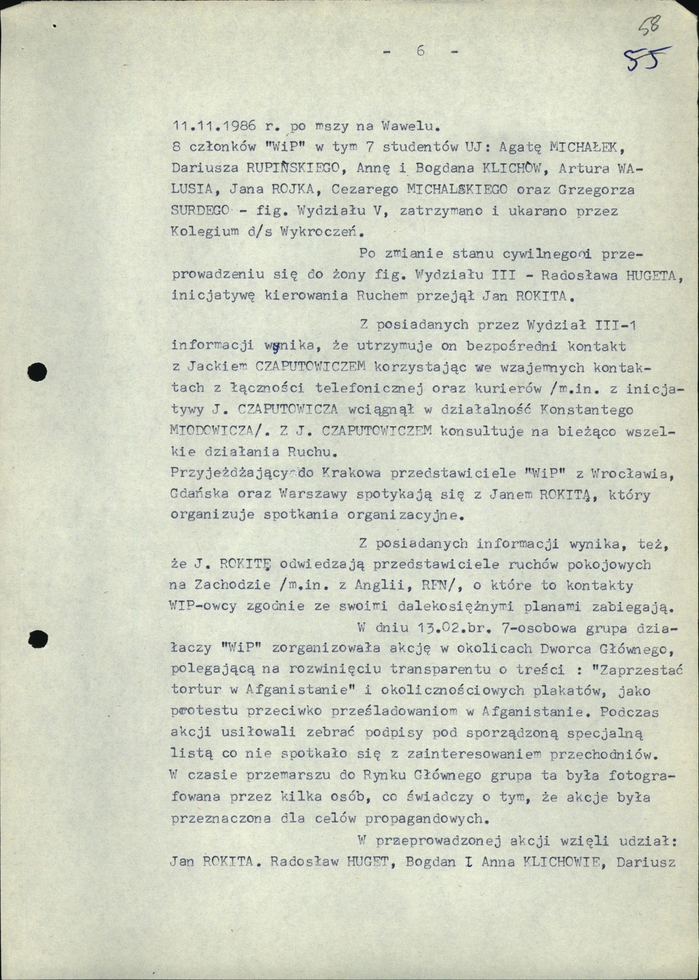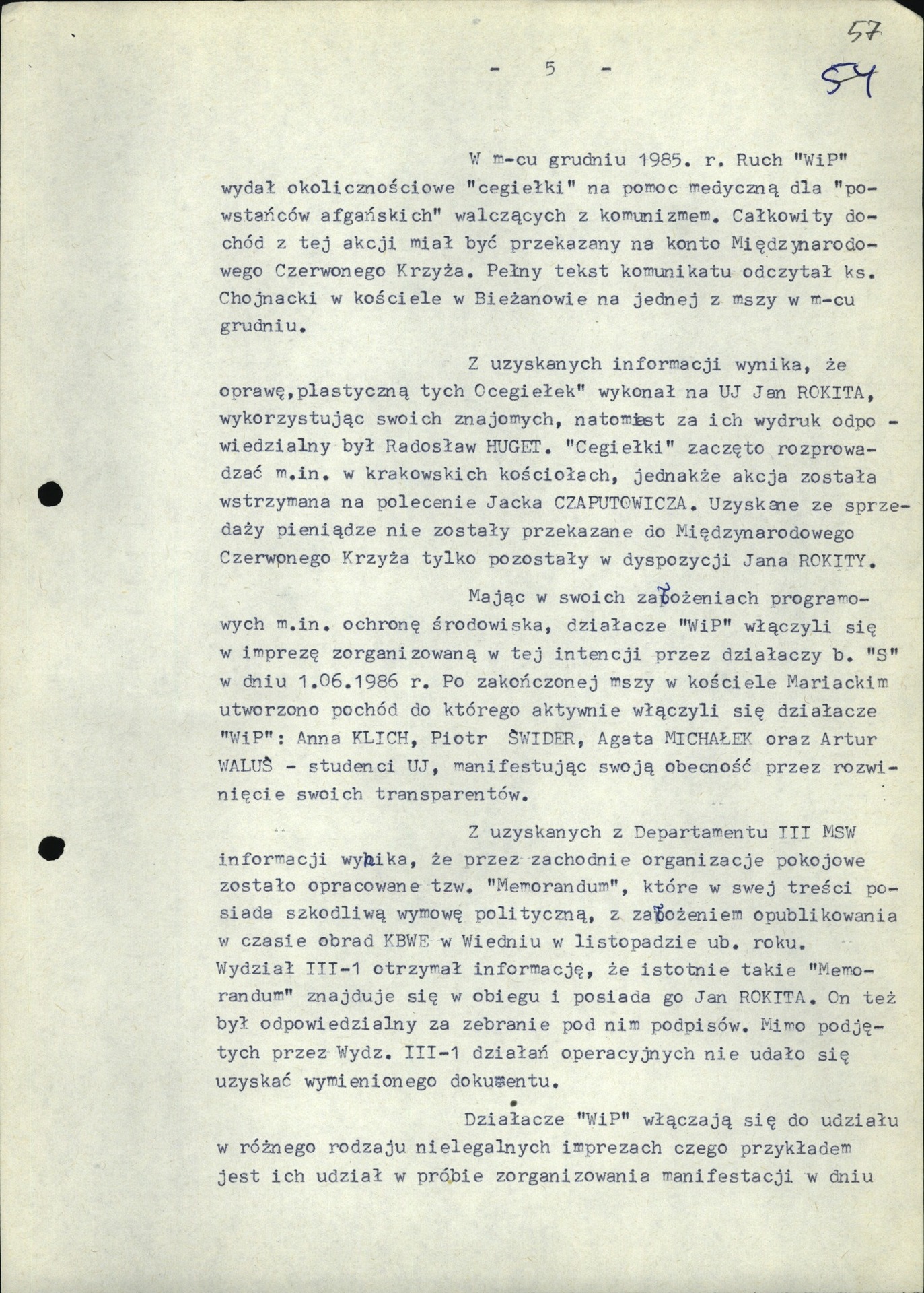 Analiza SOR krypt. „Pacyfiści” prowadzonej wobec działaczy Ruchu „Wolność i Pokój”. Kraków, 9 III 1987 r. (z zasobu IPN)