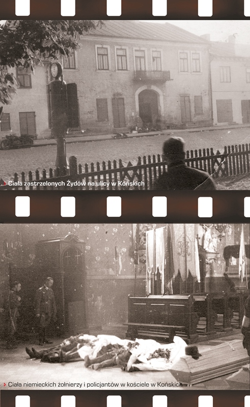 Wypadki w Końskich zostały utrwalone na co najmniej kilkunastu fotografiach. Autorem niektórych był radiooperator Wehrmachtu Stubbening, który później zginął na froncie wschodnim. Wizyty Hitlera i Leni Riefenstahl, kopanie grobów przez Żydów, ciała zabitych i pogrzeb niemieckich żołnierzy były – jakkolwiek makabrycznie to brzmi – atrakcyjnymi tematami, które każdy żołnierz chciał umieścić w swoim pamiątkowym albumie. Dlatego istnieje kilka kopii tych samych ujęć. Egzemplarz, który reprodukujemy, pochodzi z serii zdjęć znajdującej się w zbiorze fotografii byłej Głównej Komisji Badania Zbrodni przeciw Narodowi Polskiemu przechowywanym w Archiwum IPN.