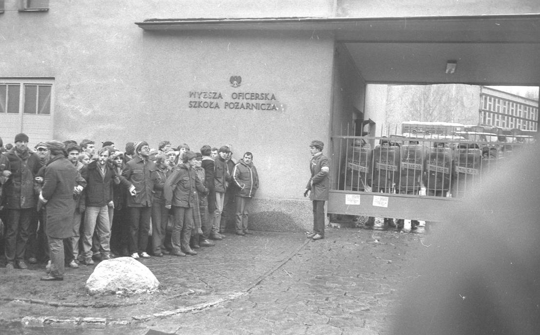 A tych pod szkołą zbierało się coraz więcej – 1 grudnia wieczorem tłum wokół gmachu, złożony z rodzin podchorążych, robotników warszawskich zakładów pracy i mieszkańców stolicy liczył ok. 2 tys. osób. Istotne dla podtrzymania na duchu młodych strażaków były również posługa kapłańska (m.in. spowiedź) i Msze św. odprawiane dla nich przez ks. Jerzego Popiełuszkę od 29 listopada. Artur Górecki tak wspomina ks. Jerzego: