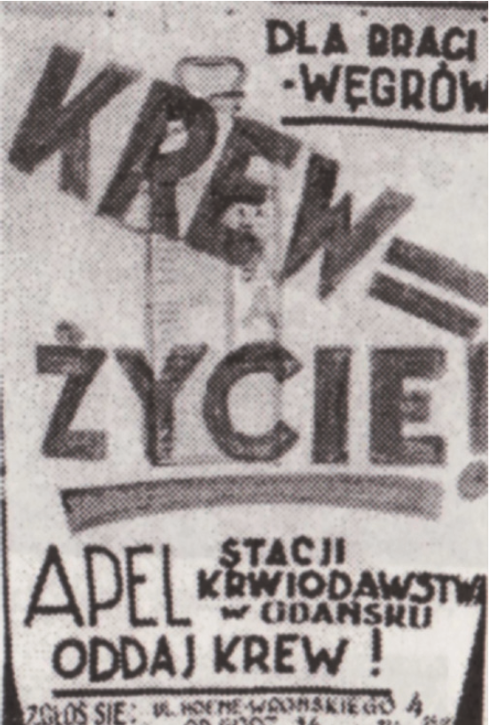 Dodajmy też, że w owym czasie polskie krwiodawstwo borykało się ze zbyt niskim poziomem produkcji krajowej – niewystarczającym do pokrywania bieżących potrzeb lecznictwa i do wykorzystania w wytwarzaniu nowych leków krwiopochodnych. Dawcy byli niemal wyłącznie płatni, otrzymujący za krew niewielki ekwiwalent finansowy. Do honorowych krwiodawców zaliczali się zwykle tylko członkowie rodzin osób hospitalizowanych, ofiarny personel medyczny i aktywiści społeczni. Odgórna akcja ogłoszona w 1950 r. zbierania krwi dla Koreańskiej Republiki Ludowo-Demokratycznej nie spotkała się z wielkim odzewem. Inaczej było w 1956 r. – w okresie Poznańskiego Czerwca kilkuset miejscowych ochotników bezinteresownie przekazało krew na rzecz rannych. Jednak akcja pomocy Węgrom była czymś zupełnie wyjątkowym. I mimo że znacząco uszczupliła ona zapasy krwi, którymi dysponowały polskie stacje krwiodawstwa, to po tej akcji społeczeństwo zmieniło stosunek do kwestii oddawania krwi. Od 1958 r. rozpoczął się rozwój honorowego krwiodawstwa.