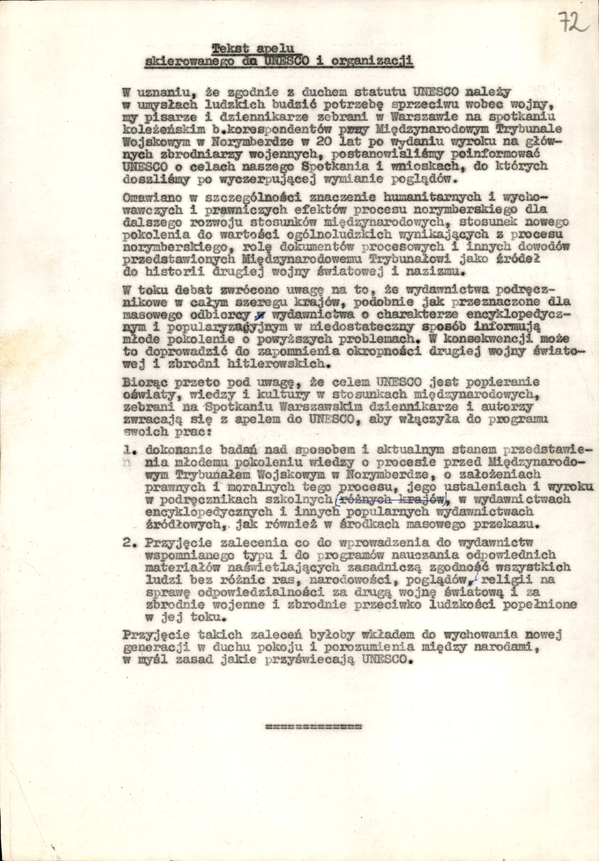 Final Communiqué of the Reunion of Former Nuremberg Correspondents, November 12, 1966. From the Archives of the Institute of National Remembrance