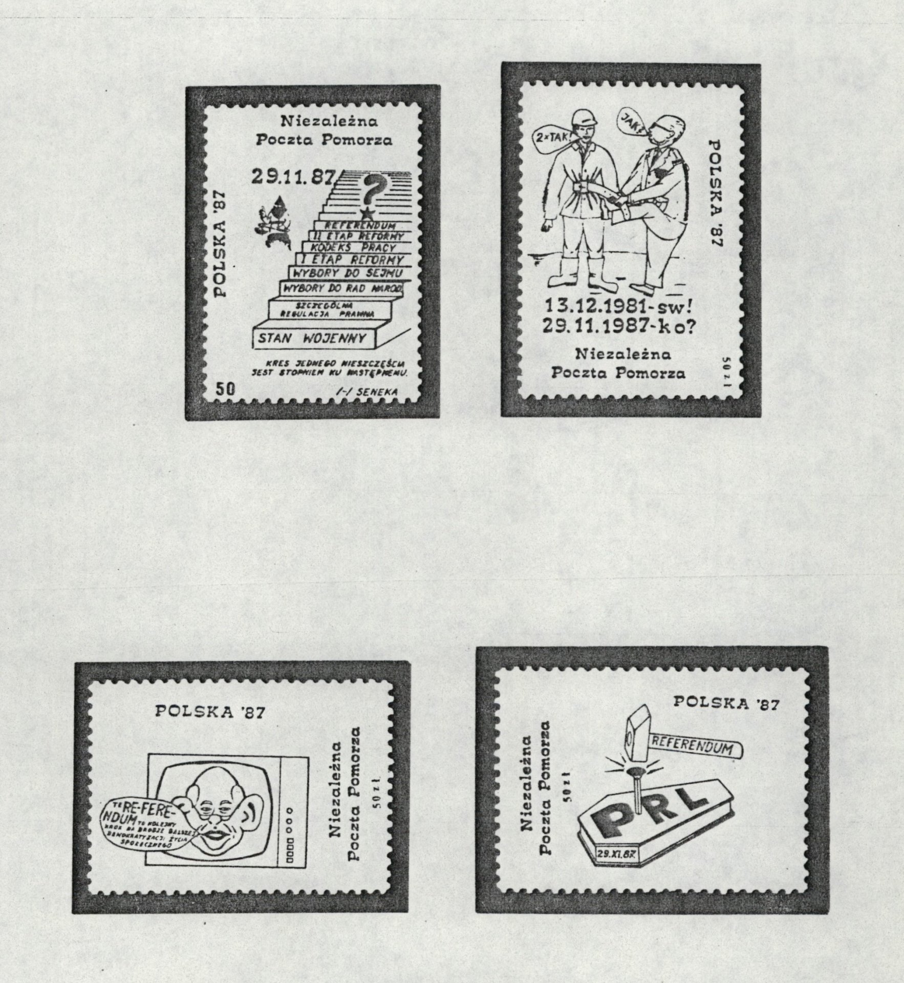 Stamps (from the anti-communist underground) from the series “Group of Polish cynics at the end of the 20th Century.” From the collections of the Institute of National Remembrance (from the Sławomir Lener collection)