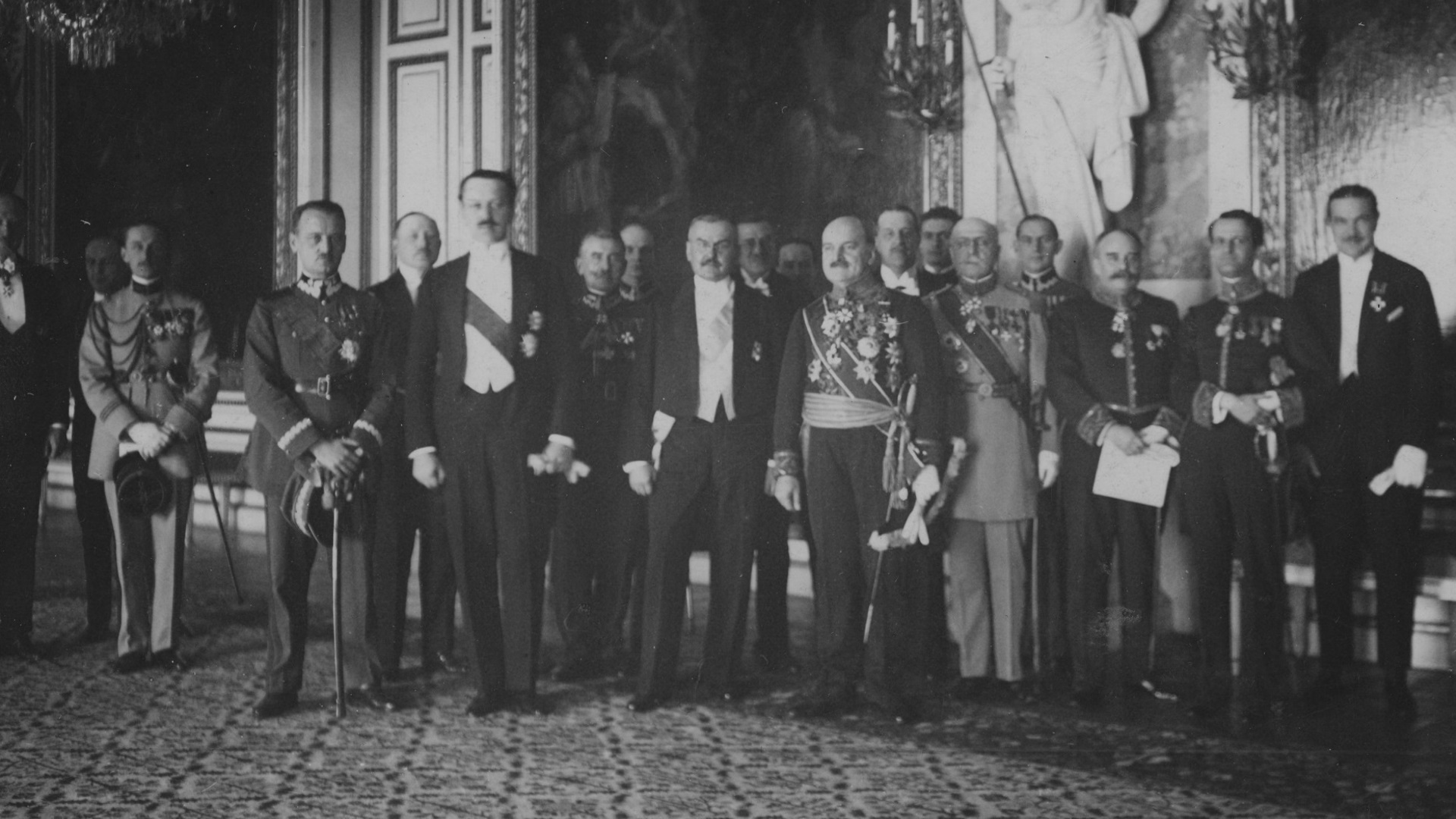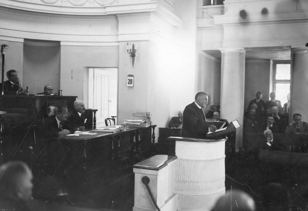 Posiedzenie Komitetu Budowy Pomnika Nieznanego Żołnierza w Warszawie, 1924 r. Widoczni m.in.: prezes Związku Legionistów Polskich Walery Sławek, generał Władysław Sikorski, premier Władysław Grabski, gen. Józef Haller, gen. Tadeusz Jordan Rozwadowski, gen. Daniel Konarzewski, gen. Kazimierz Sosnkowski, biskup polowy WP Stanisław Gall.(fot. z zasobu NAC)