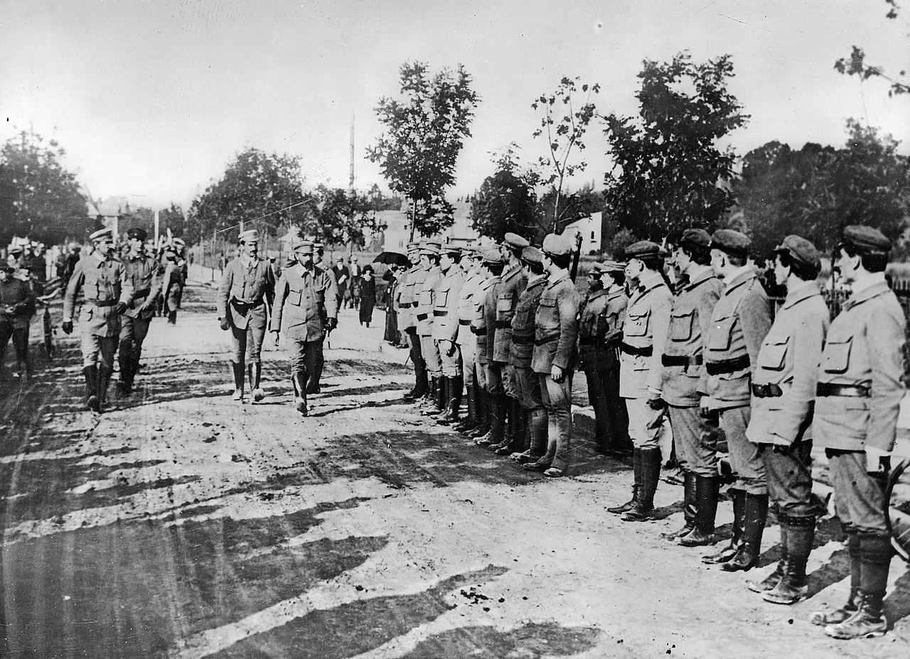 Józef Piłsudski ze swoim sztabem przed pałacem gubernialnym w Kielcach. 12 sierpnia 1914 r. (fot. domena publiczna) Widoczni: Władysław Stryjeński, Sulistrowski, Wacław Stachiewicz, Kazimierz Sosnkowski, Michał Sokolnicki, Walery Sławek, Michał Sawicki , Władysław Prażmowski-Belina, Józef Piłsudski, Aleksander Litwinowicz, Horoszkiewicz, Michał Fuksiewicz, Gustaw Daniłowski , Ignacy Boerner, Mieczysław Trojanowski-Ryś