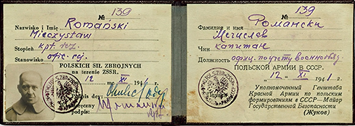 Po podpisaniu 30 lipca 1941 r. umowy między Polską a ZSRS, znanej jako układ Sikorski-Majski, obywateli polskich „amnestionowano” i umożliwiono stworzenie Armii Polskiej na terenie Związku Sowieckiego. Również kpt. Romań ski został 5 września 1941 r. zwolniony z obozu i udał się do rejonu siemioziornego w obwodzie kustanajskim, Andrzej zaś – w miejsce formowania Armii Polskiej w ZSRS, do Buzułuku3. W obwodzie kustanajskim we wrześniu 1941 r. Mieczysław krótko pracował na budowie kolei Akmolińsk–Kartały. Pod koniec października 1941 r. przybył do Buzułuku. 7 listopada w Tockoje został pozytywnie zweryfikowany na stopień kapitana. Kilka dni późnej Dowództwo Armii Polskiej w ZSRS mianowało go przedstawicielem Armii w obwodzie kustanajskim.