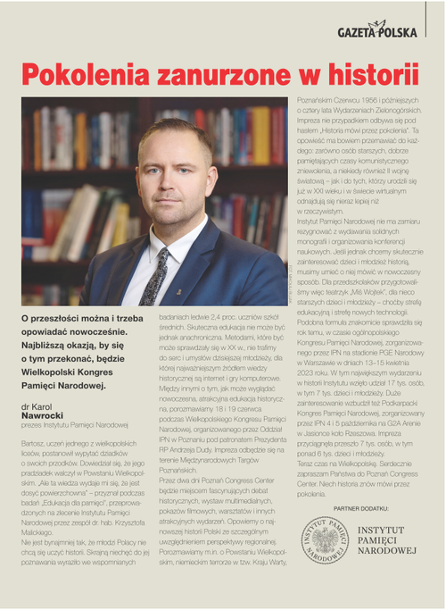 - dr Karol Nawrocki, prezes Instytutu Pamięci Narodowej, Pokolenia zanurzone w historii