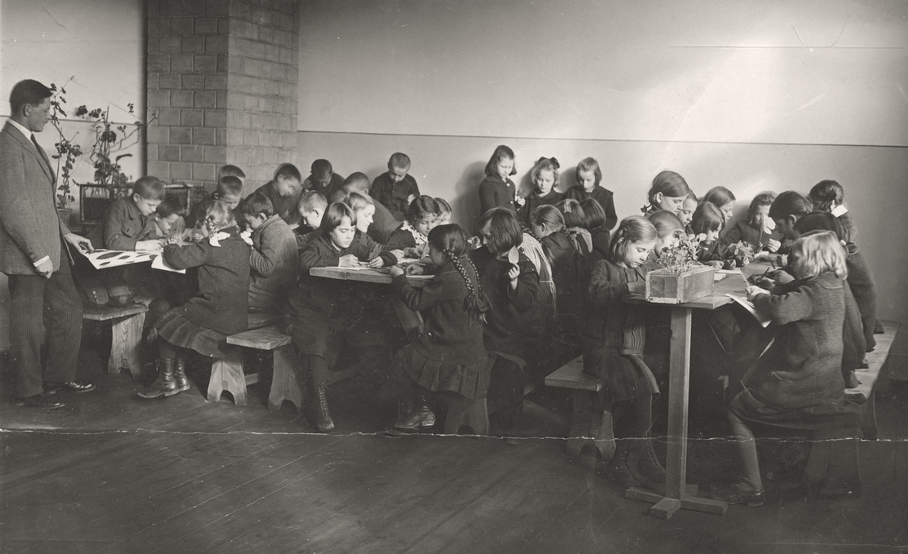Uczniowie Publicznej Szkoły Powszechnej nr 65 w Warszawie podczas zajęć lekcyjnych, 1925 r. (fot. z zasobu NAC)