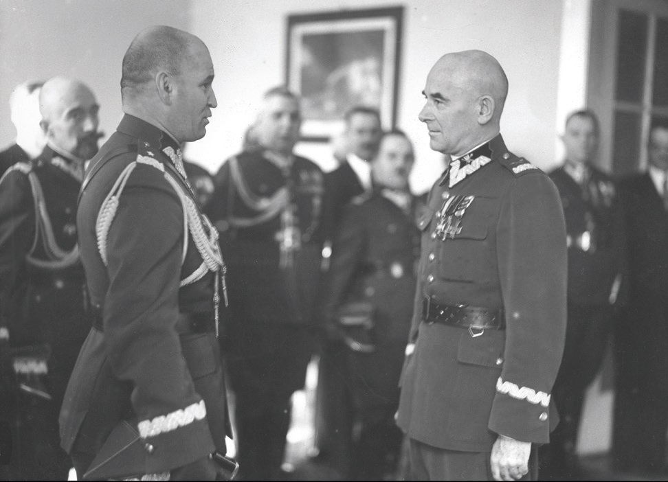 Gen. Józef Zając wśród pilotów podczas Tygodnia Ligi Obrony Powietrznej i Przeciwgazowej w Katowicach, 1933 r. Widoczni od lewej: por. Bronisław Kosiński, gen. Józef Zając, kpr. Karol Pniak, kpr. Stanisław Macek (fot. z zasobu AIPN)
