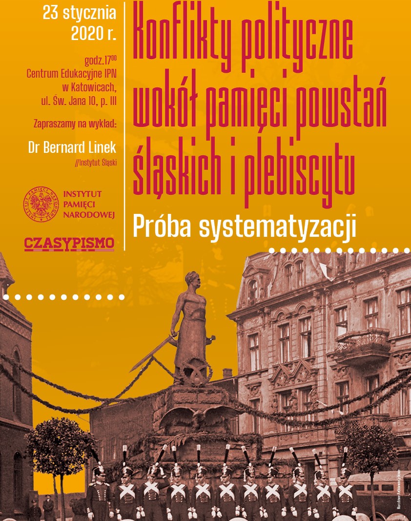 W jaki sposób pamięć o burzliwych wydarzeniach historycznych lat 1919-1921 na Górnym Śląsku wykorzystywano politycznie przy okazji obchodów rocznicowych po obu stronach granicy polsko-niemieckiej i przez różne siły polityczne w obrębie obu państw? Dr Bernard Linek, historyk z opolskiego Instytutu Śląskiego, podejmuje, na podstawie przygotowywanej do druku monografii, próbę uporządkowania różnych form pamięci o powstaniach i plebiscycie. Czyni to na podstawie analizy obchodów powstańczo-plebiscytowych oraz towarzyszących im debat publicznych z lat 1931 r., 1946 r. i 1961 r.